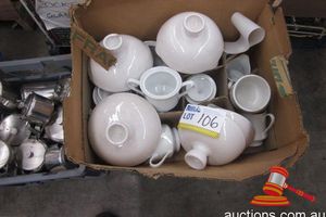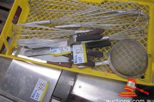 Catering and Restaurant: Cake Display Fridges, Heated Display Units, Refrigerated Display Units, Trolleys, Stainless Steel Benching, Single, Double and 3 Door Display Fridges, Cafe Tables and Chairs, UB Fridges, Wok Burners, 6 Burner Ranges, Pie Warmers, Gas Hot Plates, Dish Washers, Glass Washers, Sandwich Prep Benches, Stockpots, Chopping Boards, Kitchen Utensils, Glassware, Plus Contents of Ice Cream Shop.