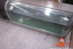 2 PCE CURVED GLASS COUNTER UNIT 1 HALF AMBIENT, 1 HALF REFRIGERATED & CENTRE COUNTER TOP