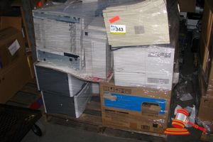 PALLET CONTAINING ASSORTED PRINTERS INCLUDING XEROX HP LEXMARK AND DATA TRANSFER SWITCHES
