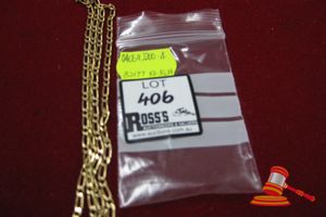 A STAMPED 9CT YELLOW GOLD CHAIN. BROKEN PARROT CLASP. BEVELLED CURB LINK OF 55CMS. VALUATION$ 350.00 18.3G WEIGHT (IMS NO 011012 1000 14367/1) (KF3335)