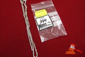 A STAMPED 18CT WHITE GOLD, CHAIN. BROKEN 1 PLACE. ROPE LINK OF 55CMS INCLUDING PARROT CLASP. VALUATION $400.00 9.7 WEIGHT (IMS NO 060912 2240 13060/2) (KF 3302)