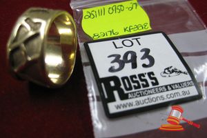 A STAMPED 22CT YELLOW GOLD SIGNET RING. RECTANGULAR 'DIA CUT' TOP/HEAD, VALUATION $240.00, 6.6 WEIGHT, 20.05 MM DIAM (IMS NO - 081211 1010 11064/3) (KF3282)