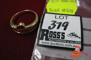 A STAMPED 9CT YELLOW GOLD, 3 DIAMOND RING. 3 BRILLIANT CUT DIAMONDS, 1 0F 0.10CT, 1 OF 0.05CT AND 1 OF 0.04CT EACH APPROX. VALUATION $140.00, 2.1 WEIGHT, 15.76 MM DIAM (IMS NO 251111 0950 13347/63) (KF3307)