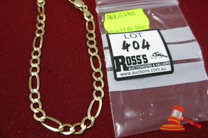 A STAMPED 9CT YELLOW GOLD, CHAIN BRACELET, BROKEN WITH WORN LINKS, BEVELLED CURB LINKS, FIGARO STYLE OF 21 CMS LONG INCLUDING PARROT CLASP, VALUATION $140.00, 11.2 WEIGHT (IMS NO 030912 0810 88101/5) (KF3293)