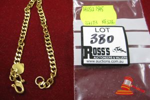 A STAMPED 9CT YELLOW GOLD, CHAIN BRACELET, CURB LINK OF 22CMS LONG INCLUDINGPARROT CLASP, VALUATION $ 100.00, 6.5 TOTAL WEIGHT, (IMS NO 290212 1545 11628/4) (KF3266)