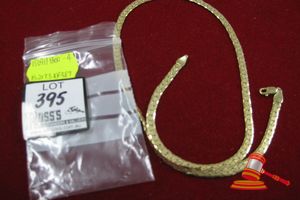 A STAMPED 9CT YELLOW GOLD, CHAIN NECKLET, FLAT, BEVELLED, TEXTURED, FIINE, 'ZIP' LINK OF 45CMS LONG INCLUDING PARROT CLASP, VALUATION $100.00, 5.5 WEIGHT (IMS NO 150911 1300 13546/4) (KF3287)
