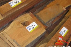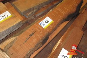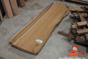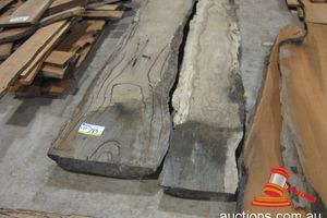 BLACKBUTT SLABS 2.75M LONG X 400MM WIDE X 40MM THICK WITH 2 BOARDS 1.2M LONG X 200MM WIDE X 30MM THICK SKIP DRESSED