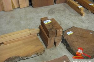 HIGHLY FIGURED JARRAH BLOCKS WITH BURL AVERAGE 300MM LONG AND 100MM X 100MM SQUARE