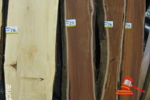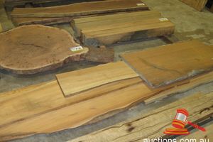 JARRAH QUILTED NATURAL EDGE SLABS 1.5MTRS X 310MM AVE X 30MM SOME CURL AND CATS PAW FEATURE