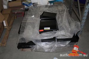 PALLET OF APPROX 80X BLACK TRAY SHOP FITTING SHELVES