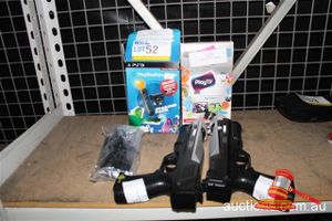 ASSORTED PS3 ACCESSORIES INCLUDING PLAYSTATION MOVE STARTER PACK PLAY TV AND 2 X PLAYSTATION 3 GUNS WITH 2 X PLAYSTATION MOVE CONTROLLERS WITH GUITAR HERO PS 3 MICROPHONE