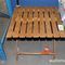 RECTANGULAR WOODEN TABLE WITH BLACK EDGING AND BLACK METAL LEGS