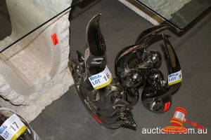 SET OF 3X ABSTRACT SPIKED ORNAMENTS 510MM TALL CHROME FINISH