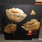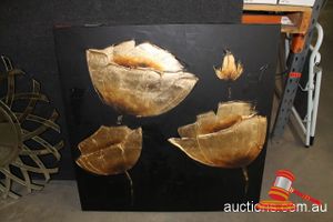BLACK AND GOLD FLOWER PAINTING ON CANVAS 1000 X 1000MM