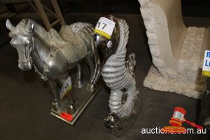 TARNISHED SILVER DESIGNER HORSE ORNAMENT 550MM TALL