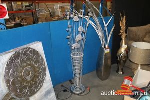 SILVER ORNAMENT LAMP 1400MM WITH GLASS ORBS AND METAL FLOWERS