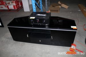 BLACK GLOSS GLASS TOP 1800 X 470 X 550MM ENTERAINMENT UNIT 2 DOOR 1 DRAWER