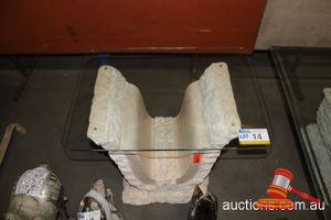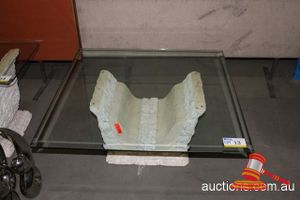GLASS TOP STONELOOK COFFEE TABLE 1000 X 1000 X 390MM