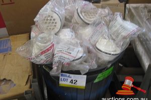 ASSORTED SUNDRIES INCLUDING LAD BINS, SWIVEL MIXER TAP OUTLETS, PLUMBING FITTINGS, AND CERAMIC BASIN
