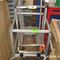 STEEL FRAME, SHELVING UPRIGHTS AND ROLL OF OMINSPORTS REFERENCE BEECH, LINOLELUM WITH UNDERLAY (LENGTH UNKNOWN)