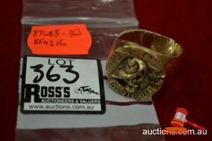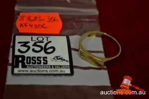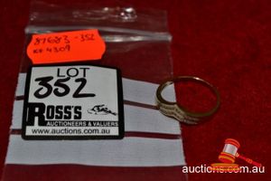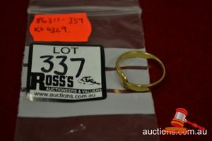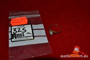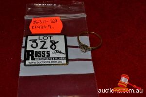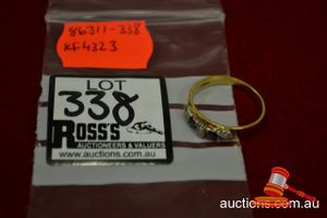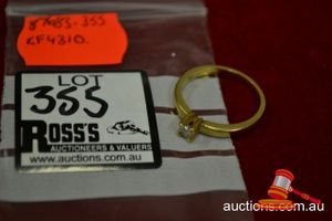 A STAMPED 18CT YELLOW GOLD, 1 IMITATION DIAMOND BAND RING. WITH 1 ROUND FACETED IMITATION OF 1.3MM DIAM. APPROX. IN CONTINUOUS BAND WITH 'V' SHAPED TOP/HEAD, VALUATION $100.00 TOTAL WEIGHT 2.70 (KF4329) (IR-180610 1230 10957/230)