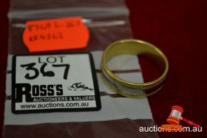 A STAMPED 9CT YELLOW GOLD, BAND RING. CONTINUOUS AND TEXTURED.VALUATION $115.00, TOTAL WEIGHT 7.60 (KF4332) (IR-180610 1230 10957/213)