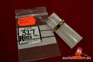 A STAMPED 9CT YELLOW GOLD, 1 BLUE SAPPHIRE AND 6 DIAMOND RING. 1 OVAL FACETED SAPPHIRE OF 6MM X 4MM DIAM. APPROX. AND 6 BRILLIANT CUT DIAMONDS OF 0.02CT EACH APPROX. VALUATION $110.00, TOTAL WEIGHT 2.50 (KF4331) (IR-180610 1230 10957/189)