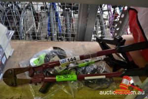 METABO 5" GRINDER, ASSORTED DISC PADS, BOLT CUTTERS, SMALL TYRE IRON WITH ELBOW, CAR JACK (IR-220214 2355 12047/0001,0002,230214 1600 85760/0001, 140514 0252 15103/0002,0003)