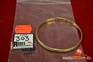 A STAMPED 9CT YELLOW GOLD, TWO TONE BANGLE. HOLLOW, HALF ROUND WITH STAR CUT PATTERN, CONTINUOUS. VALUATION - 125.00, TOTAL WEIGHT 8.30, (KF-4359) (IR-041012 0025 12388/15)