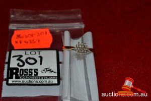 A STAMPED 18CT YELLOW GOLD, 5 DIAMOND CLUSTER RING. WITH 5 BRILLIANT CUT DIAMONDS (4 OF 0.03CT AND 1 0F 0.02CT EACH APPROX.) CLAW SET AT STAGGERED HEIGHTS.VALUATION $100.00 TOTAL WEIGHT 1.90 (IR-180610 1230 10957/187)