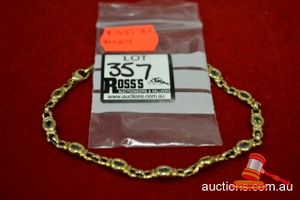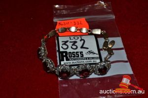 A TESTED YELLOW GOLD, GARNET AND IMITATION DIAMOND BRACELET WITH 6 ROUND FACETED GARNETS OF BETWEEN 7MM - 8MM DIAM. EACH APPROX. AND 91 IMITATION DIAMONDS (PLUS ONE MISSING) OF 2MM DIAM.VALUATION $170.00, TOTAL WEIGHT 11.70 (KF4335) (IR-180610 1230 10957/205)