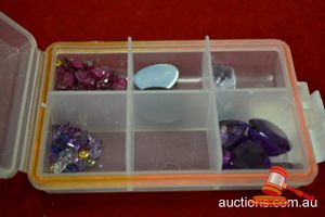 A BOX CONTAINING 227 ASSORTED STONES. ASSORTED CUTS OF NATURAL, SYNTHETIC AND IMITATION. VALUATION $300.00 (KF4330B) (IR-180610 1230 10957/105)