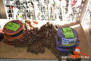ASSORTED STRAPPING EQUIPMENT INCLUDES CHAINS, RATCHETS AND STRAPS (IR-201212 0500 14309/002 ,3,7,8,12,28 ,29,30)