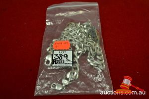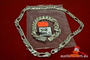 2 X STAMPED SILVER CHAIN BRACELET AND NECKLET. NECKLET MEASURES 50CMS LONG INCLUDING PARROT CLASP. AND WEIGHS 64.9GRAMS BRACELET MEASURES 21CMS LONG INCLUDING CLASP AND WEIGHS 71.9GRAMS. VALUATION $120.00, TOTAL WEIGHT 136.80 (KF4373) (IR-031212 1200 12815/119)
