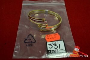 A STAMPED 18CT ROSE, YELLOW AND WHITE GOLD FANCY BANGLE. HINGED WITH THREE ARMS HAVING FLORAL ENDS. VALUATION $520.00 TOTAL WEIGHT 16.90 (KF4350) (IR-180610 1230 10957/203)