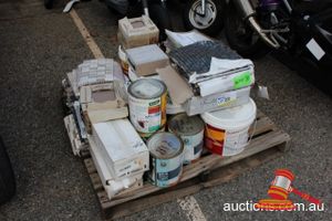 PALLET OF ASSORTED TILES AND PAINT (IR-031213 1145 11445/ 0007/0028/0029/0022/0040/0041/0050/0055