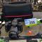 CANON T50, TOKINA 35-200MM LENS, CANON CAMERA FLASH IN A BLACK LEATHER, BLACK CANVAS "CAMCARE" CAMERA CASE (IR - 110113 1245 85578/0001,2,3,4)