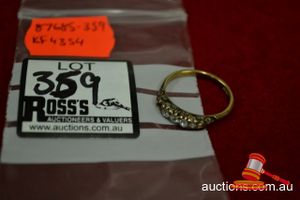 A STAMPED 18CT YELLOW GOLD, 5 DIAMOND RING. WITH 5 ASSORTED CUT DIAMONDS OF BETWEEN 0.03CT - 0.07CT EACH APPROX., CLAW SET DIAGONALLY OVER TOP/HEAD,VALUATION $135.00, TOTAL WEIGHT 2.40 (KF4378) (IR-090314 0815 15165/7)