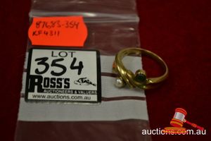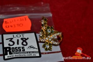 A STAMPED 21CT YELLOW GOLD, YELLOW GOLD IMITATION DIAMOND AND GREEN STONE CLAUSTER RING. MULTIPLE FLORAL DESIGN. VALUTION $100.00 TOTAL WEIGHTS 5.70 (KF4370) (IR-180610 1230 10957/168)