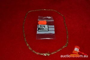 A STAMPED 9CT YELLOW GOLD, CHAIN NECKLET, BROKEN. BEVELLED, FIGARO LINK OF 55CMS LONG INCLUDING PARROT CLASP. VALUATION $165.00, TOTAL WEIGHT 10.90 (KF4371) (IR-060912 0617 86495/9)