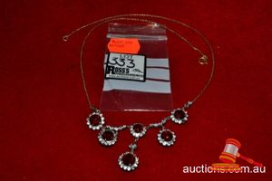 A TESTED 9CT YELLOW GOLD, GARNET AND IMITATION DIAMOND BRACELET, BROKEN. 5 ROUND FACETED GARNETS AND 67 IMITATION DIAMONDS (PLUS ONE MISSING) OF 2.1MM DIAM. AVER. VALUATION $120.00 TOTAL WEIGHT 8.80 (KF4337) (IR-180610 1230 10957/204)