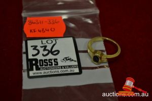 A STAMPED 14CT 1 BLUE SAPPHIRE RING. WITH 1 OVAL FACETED SAPPHIRE OF 0.45CT APPROX., FULLY RUB OVER SET. VALUATION $110.00, TOTAL WEIGHT 4.40 (KF4340) (IR-180610 1230 10957/224)