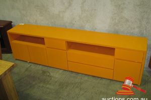 AUSTIN BLACK LACQUERED ENTERTAINMENT UNIT WITH MARRI PANELS FOUR DRAWER 2350 X 475MM