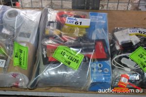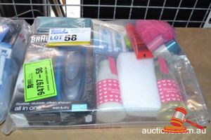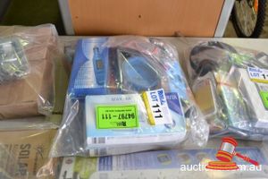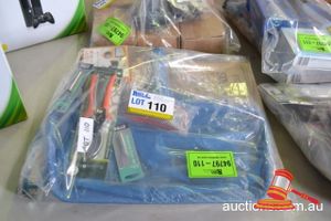 BOX OF TOOLS INCLUDES COMBINATION SQUARE (54612) DRILL SET (54611) BOLT CUTTERS (54039) WIPER REFILLS (54946)