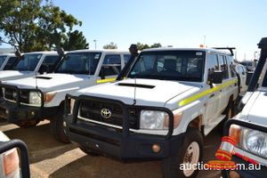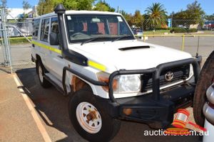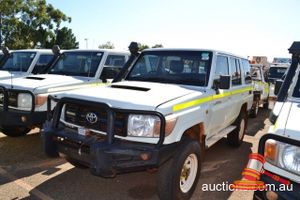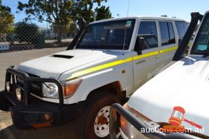 01/2011 TOYOTA LANDCRUISER 76R SERIES DUAL CAB TRAY BACK WHITE 4X4, MANUAL, P/S, A/C, V8 DEISEL, ROOBAR, SPOTLIGHTS, TOWHITCH, REG NO - (UNLIC) ODO - 211,181KMS SHOWING, ENG NO - 1VD0108225, VIN NO - JTEEV73J400005427 (A/NO-03H-5440) (S44#36137) (DR#62902) (KEY-60) (W4392)