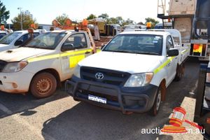 2008 TOYOTA HILUX SINGLE CAB UTILITY WHITE 4X4 MANUAL PS AC 3.0L D4D DIESEL NUDGE BAR REG# 1DEA825 (LIC: 23/2/15) ODO 118,387 KMS SHOWING ENGINE# (1KD7653649) VIN# (MROCZ12G300019081) FLEET# (PP055) DISPOSAL# (AA082) KEY# (97)