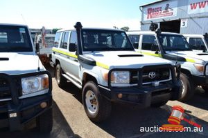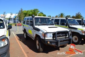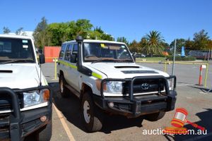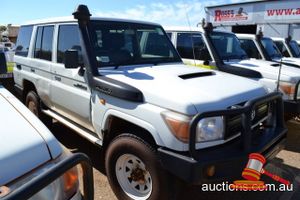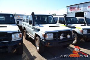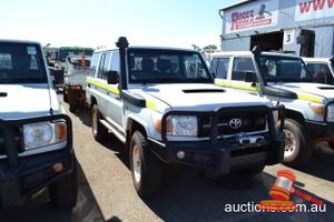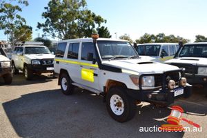 03/2011 TOYOTA LANDCRUISER 78 SERIES WAGON WHITE, 4X4 MANUAL, P/S, A/C, V8 DIESEL, ROOBAR, TWO RACK SPARE WHEEL HOLDER, TOWHITCH, REG NO - (UNLIC) ODO - 339,886KMS SHOWING, ENG NO - 1VD0115746, VIN NO - JTEEV73J400005847 (A/NO-03P5393) (S44#37184) (DR#62955) (KEY-40) (W4292)