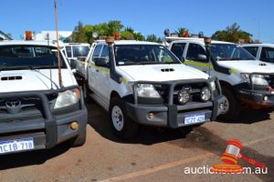 2009 TOYOTA HILUX DUAL CAB UTILITY WHITE 4X4 MANUAL P/S A/C 3.0L D4D REG# 1DCA105 (LIC 23/2/15) ODO 133,613 KMS SHOWING ASSET NO (PP051) DISPOSAL NO (AA082) KEY NO 99 (W4188)