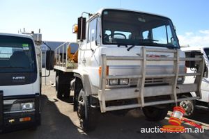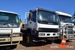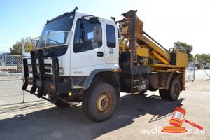02/2001 ISUZU FTS750 DRILL TRUCK, WHITE, 4X4, MANUAL, A/C, 6 CYL DIESEL, (UNLIC) WPC1362 ODO# 132,726 KMS SHOWING ON CLOCK, ENG# 6HH1296413, VIN# JALFT533HY7000221, SEAT COVERS, SITEC 200 ENGINE, BULLBAR, MESH WINDSCREEN GUARD, HLP 46 LINE BORING RIG WITH HYDRAULIC MAST & EXTENDABLE OUTRIGGERS, INCORPORATES 4 CYL DIESEL DRIVE MOTOR, (KEY# 203) (W3760)