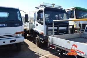 07/08 ISUZU NPS 300, D/CAB TRAY BACK WHITE 4X4 MANUAL, P/S, A/C, DIESEL, KEVREK 1000 CRANE, ROPS BAR, WATER TANK, WORKLIGHT, REG NO- (UNLIC) ODO 94246 KM SHOWING, VIN NO JAANPS75H87100509, (A/N LV0325), (KEY 102) (W) (TAIL SHAFT REMOVED PLACED IN CAR RUNNING ON FRONT DIFF)